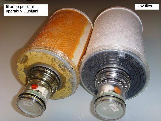 filtr nový (vpravo) a po čase používání (vlevo)